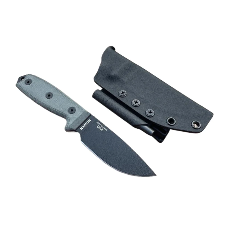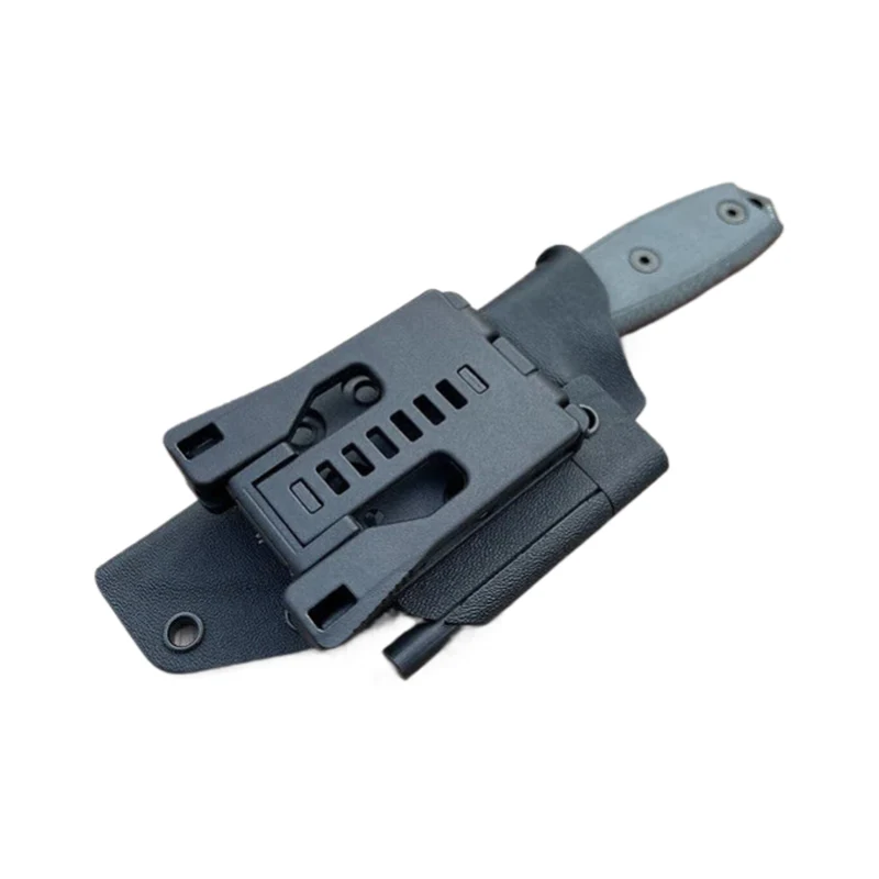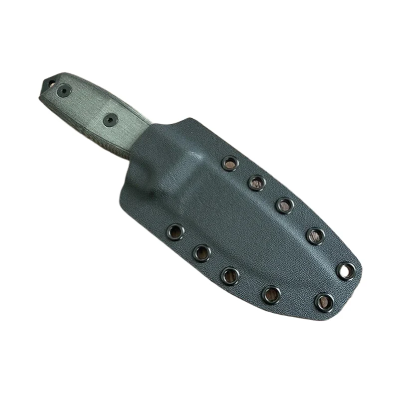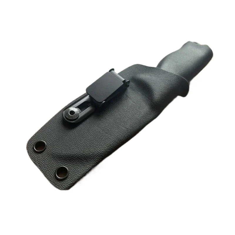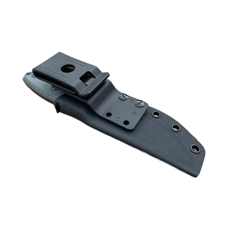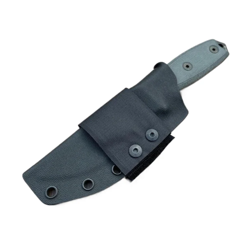 มีดตายตัวพร้อมฝักทำมาให้พอดีพอดี มีดอยู่ในฝักอย่างแน่นหนาเพื่อให้สามารถยกกลับหัวได้ (หงายขึ้น) ฝัก Kydex มีจำหน่ายแบบรูตาไก่ด้านหนึ่งและตาไก่ทั้งสองด้าน หากสั่งคลิปกรุณาระบุว่าต้องการคลิปไหน หากต้องการลายพราง ลายหลากสีอื่นๆ ลายสานตะกร้า ลายคาร์บอน หรือหนัง กรุณาใช้แบบฟอร์มติดต่อในการสั่งซื้อ